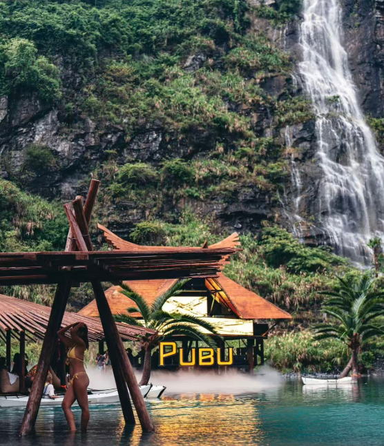 瀑布咖啡:位于村口山坳,30 米高的山涧瀑布倾泻而下,咖啡馆建在悬崖边。坐在玻璃幕墙前,可一边品尝咖啡,一边欣赏瀑布美景。