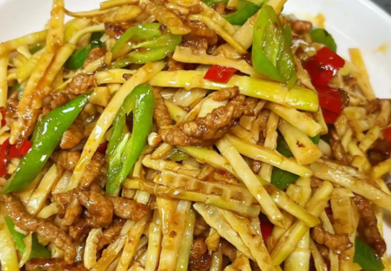 竹笋炒肉:安吉盛产竹笋,鲜嫩的竹笋与猪肉搭配,口感极佳,是余村农家乐的常见菜品。
